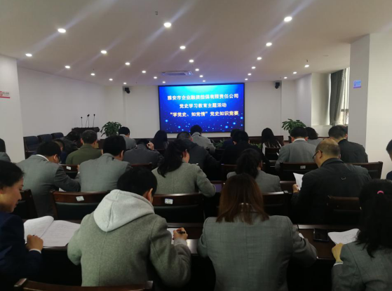 為推動(dòng)黨史學(xué)習(xí)教育深入開展,檢驗(yàn)學(xué)習(xí)成效,豐富教育形式,4月22日,市擔(dān)保公司開展“學(xué)黨史、知黨情”黨史知識(shí)競(jìng)賽,公司全體黨員干部職工參加競(jìng)賽。