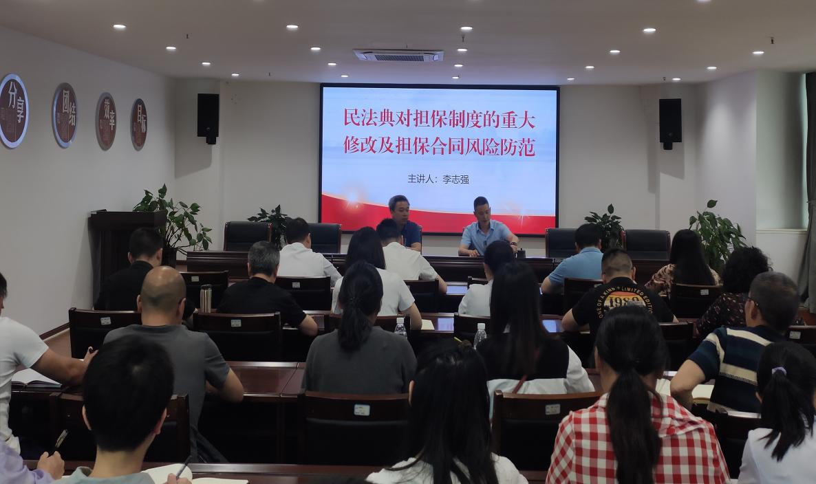 為進(jìn)一步提高風(fēng)險防范能力,幫助干部職工在實際工作中理解并正確適用擔(dān)保制度的有關(guān)法律條文,強化干部職工法治意識,按照“轉(zhuǎn)樹作抓”專項行動方案和年度學(xué)法計劃,5月11日,市擔(dān)保公司開展《民法典對擔(dān)保制度的重大修改及擔(dān)保合同風(fēng)險防范》專題知識講座。